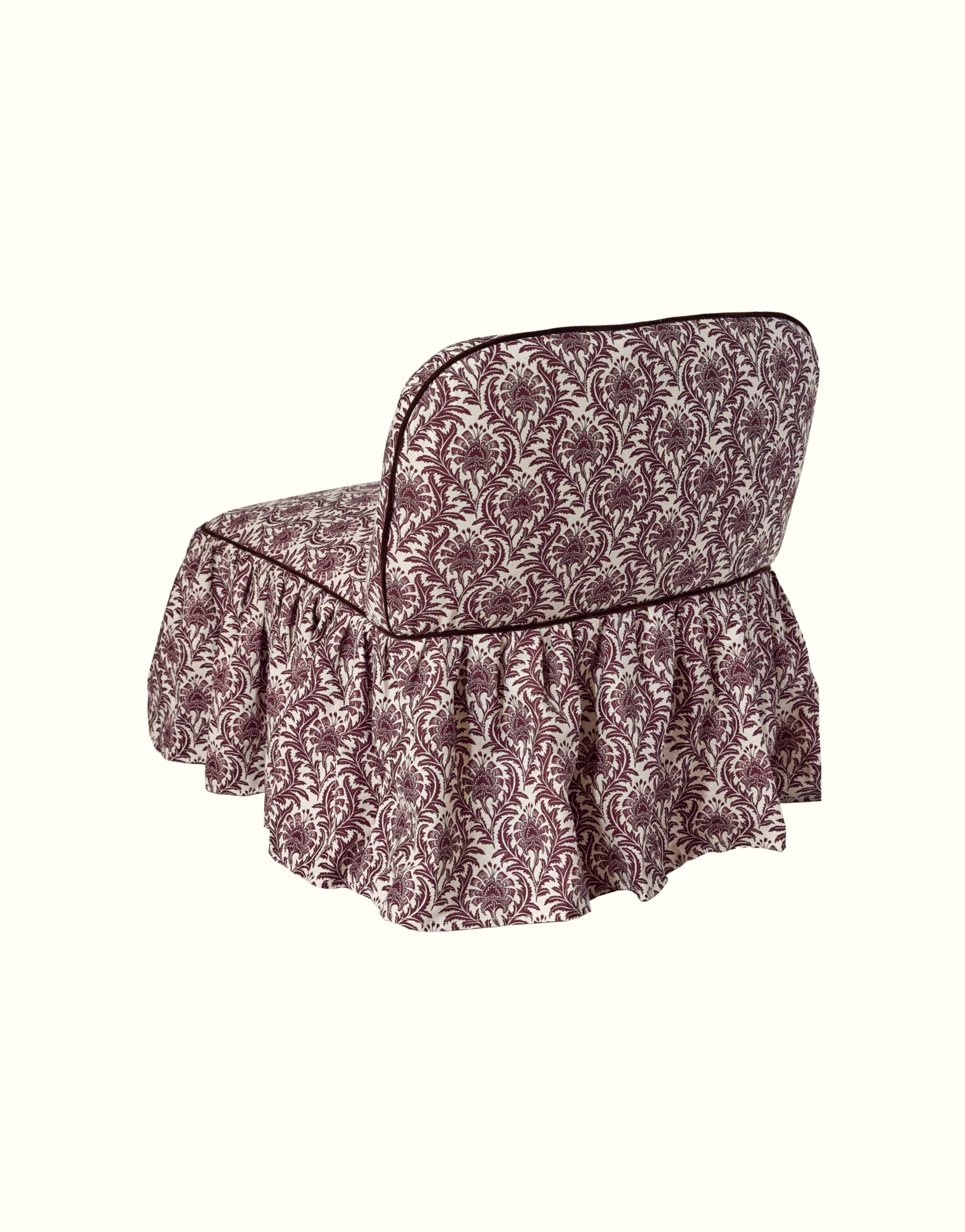 Vivien in Damson, a pretty, floral print, the CINNY Slipper Chair is accented with a full gathered skirt and co-ordinating velvet piping. With its generously cushioned seat, it’s as comfortable as it is charming.