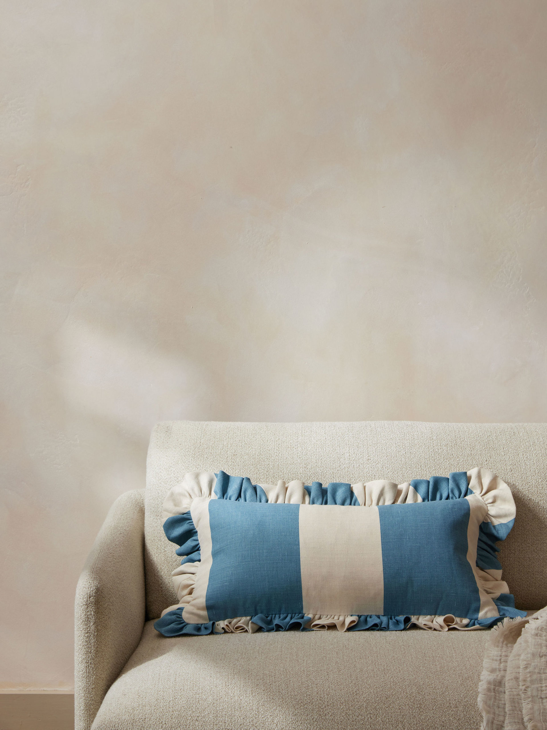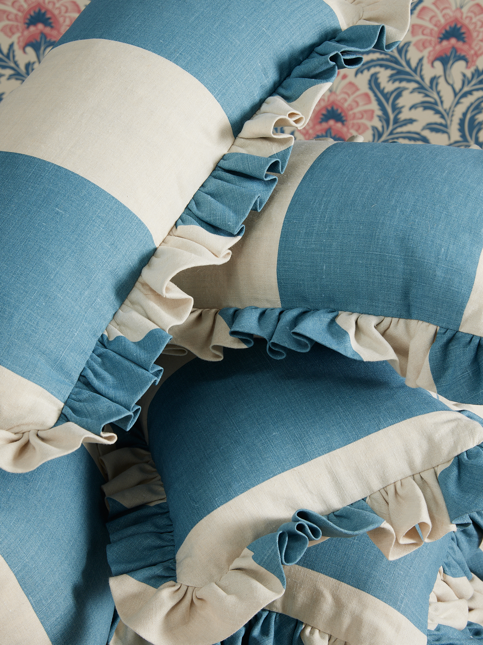 Perfect for layering on a bed, armchair, or sofa, the Arthur Stripe design works beautifully in both modern and traditional interiors. The frill detail adds texture without overpowering your space, while the blue striped fabric brings a calming feel.