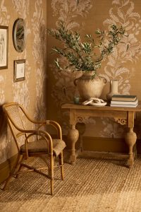 With a love of large-scale wallpapers, this floral trellis is no exception. James grasscloth wallpaper is named after my husband, James — a pillar of strength in our family and forever admired. The design embodies a blend of romanticism and elegance, offering modern classic charm that feels both grounded and uplifting.
