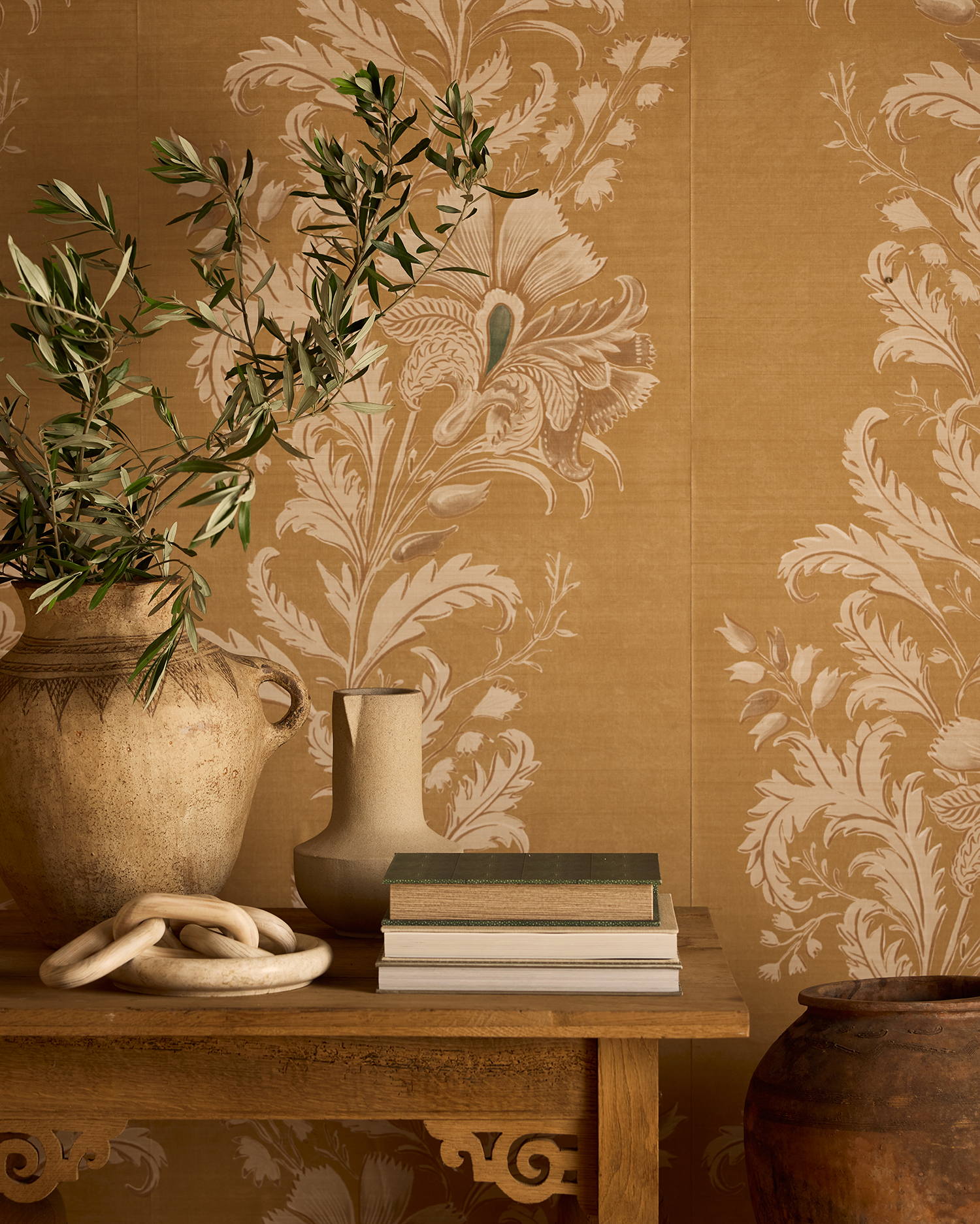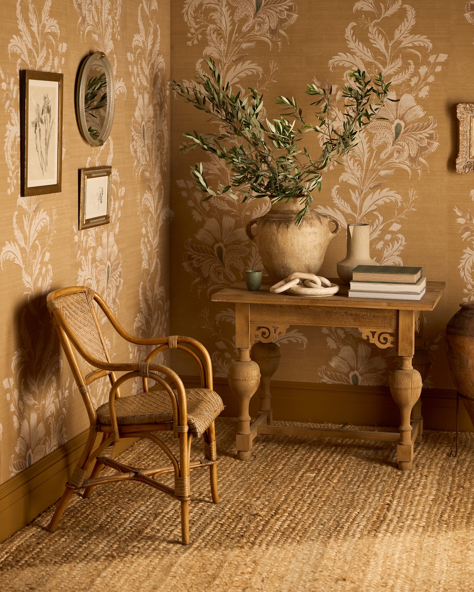 For added depth and texture, James has been newly printed as a grasscloth wallpaper, enhancing the design with a natural weave that adds richness and tactility to your walls. The textured surface of grasscloth wallpaper lend the floral pattern a timeless, elevated finish — perfect for those looking to layer visual interest into their interiors.