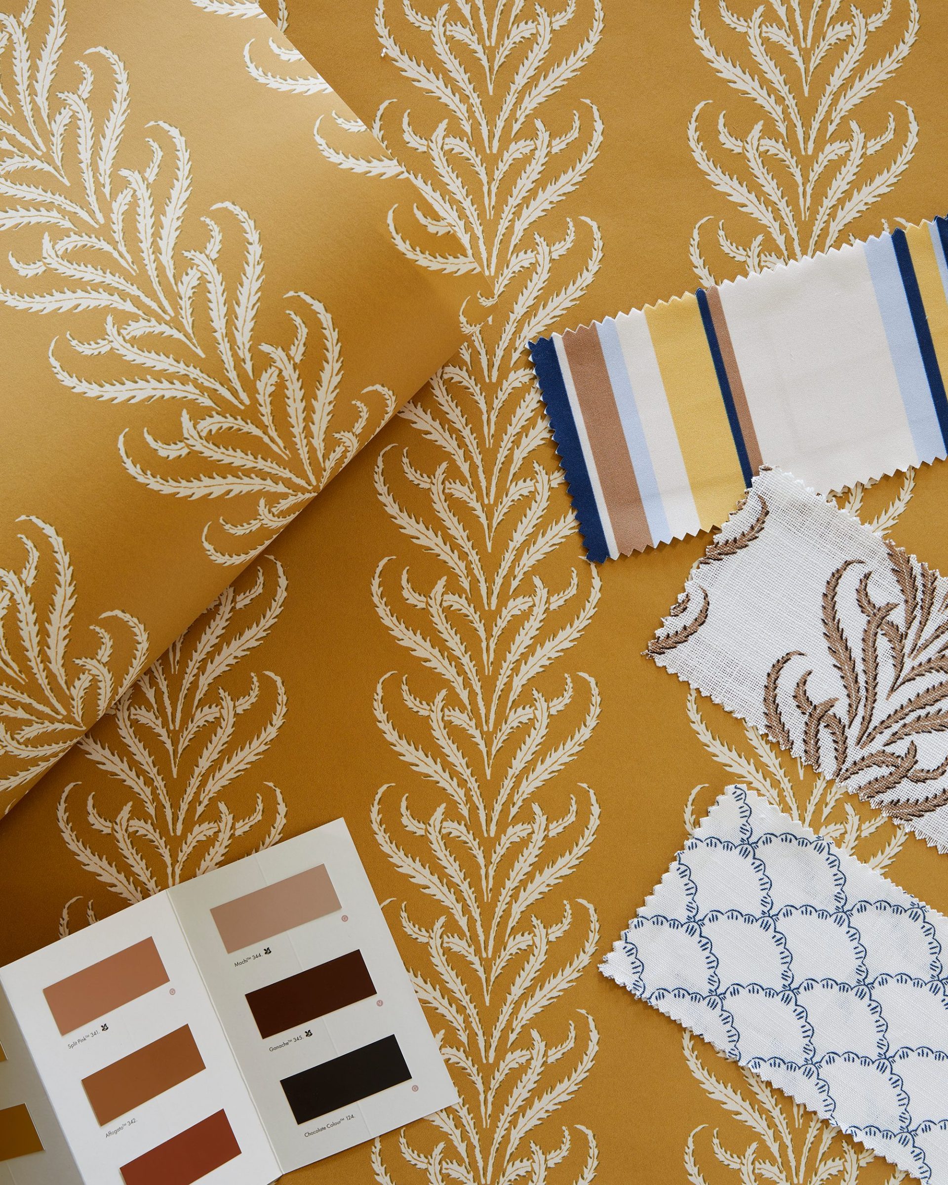 Due to colour variations of working with natural linen fabric please allow 2% difference of colour in base cloth. Due to variations of computer screens, we cannot guarantee that colours shown on your monitor are representative and we always advise ordering a sample through our distributor, Tissus d’Helene or CINNY Showroom.