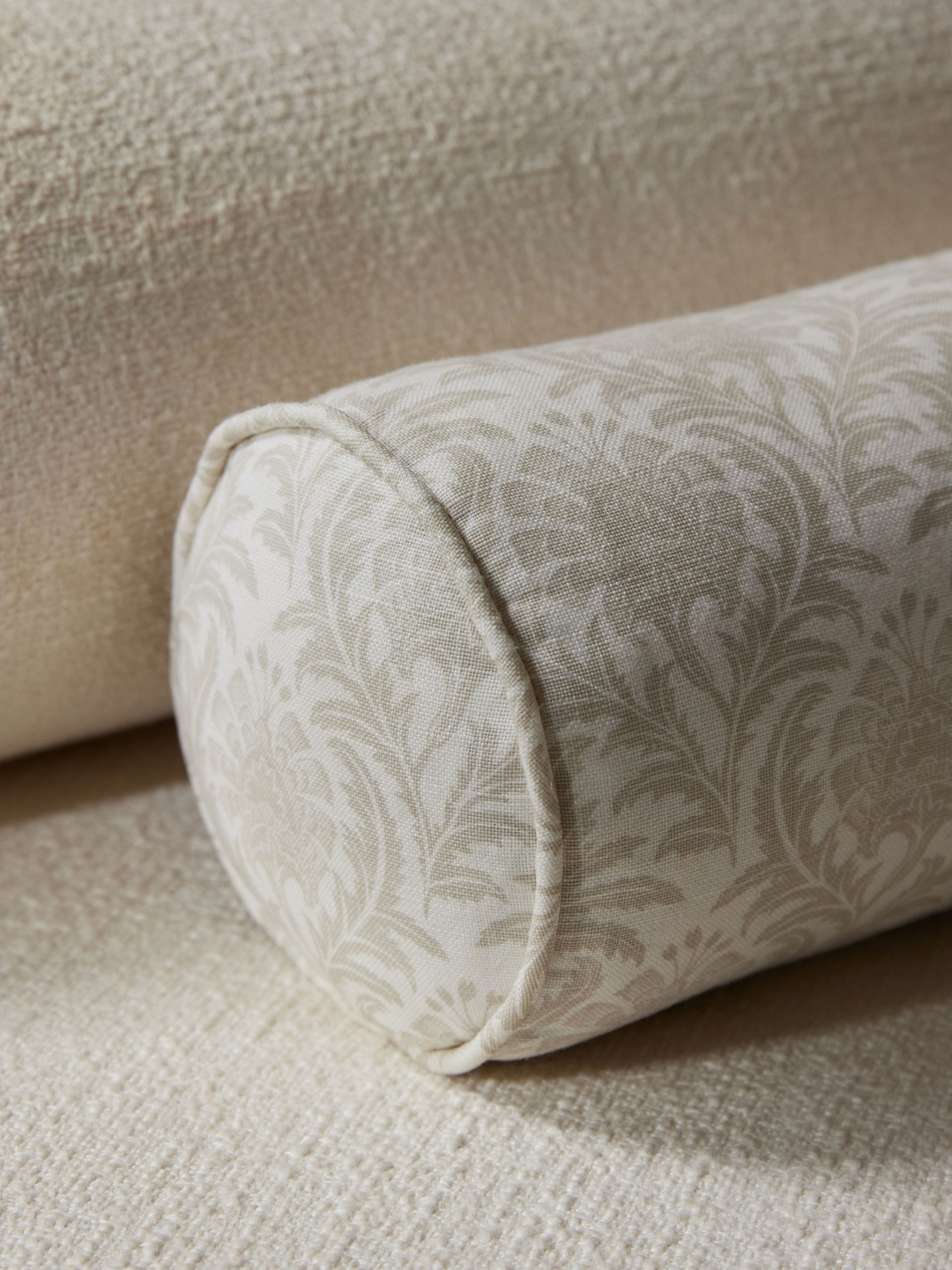 All three designs are printed on linen in subtle, considered colourways that make them easy to style throughout the home. Use these bolster cushions to echo other patterns in the room or to introduce a soft layer of print and texture.