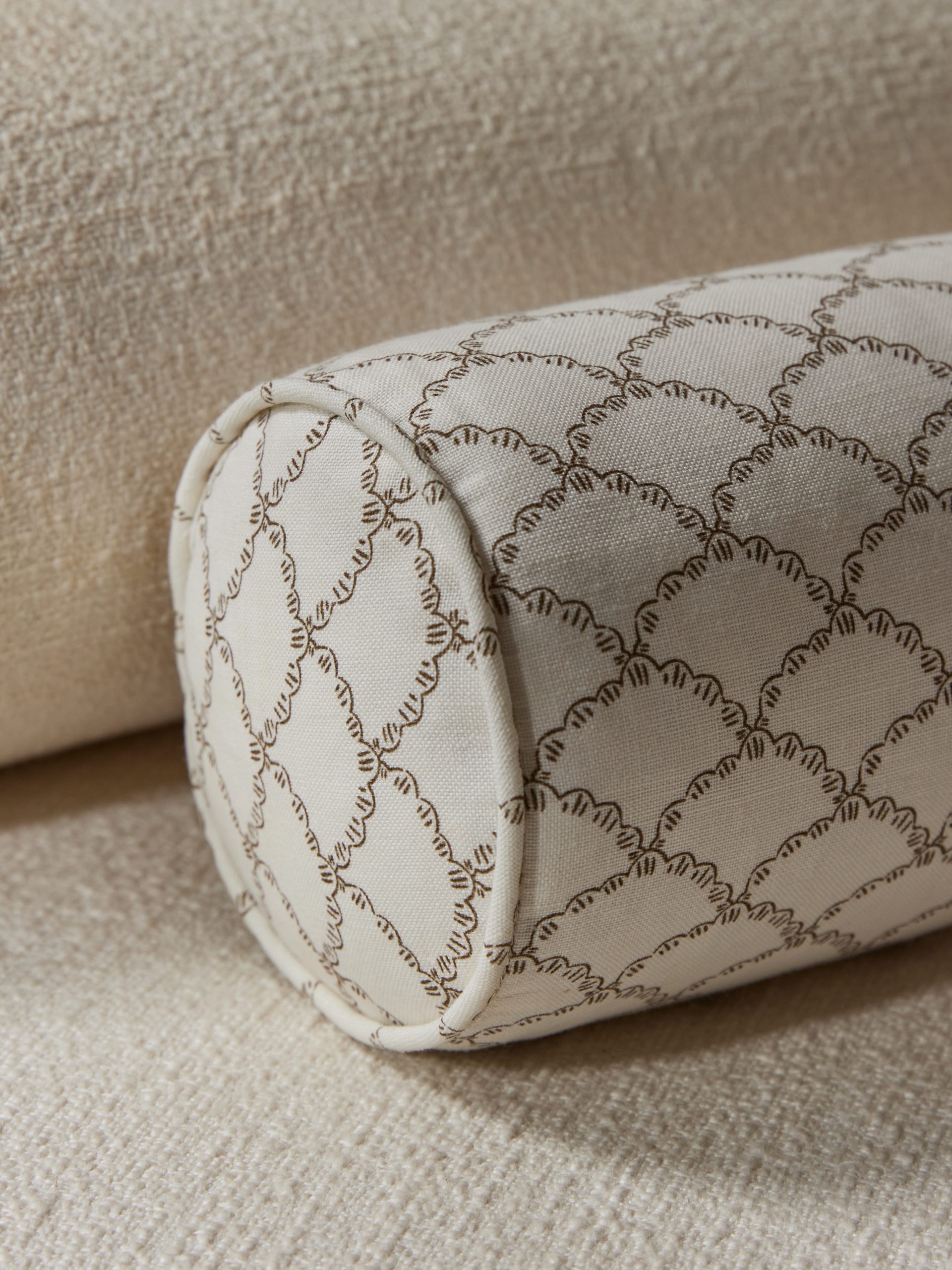 All three designs are printed on linen in subtle, considered colourways that make them easy to style throughout the home. Use these bolster cushions to echo other patterns in the room or to introduce a soft layer of print and texture.