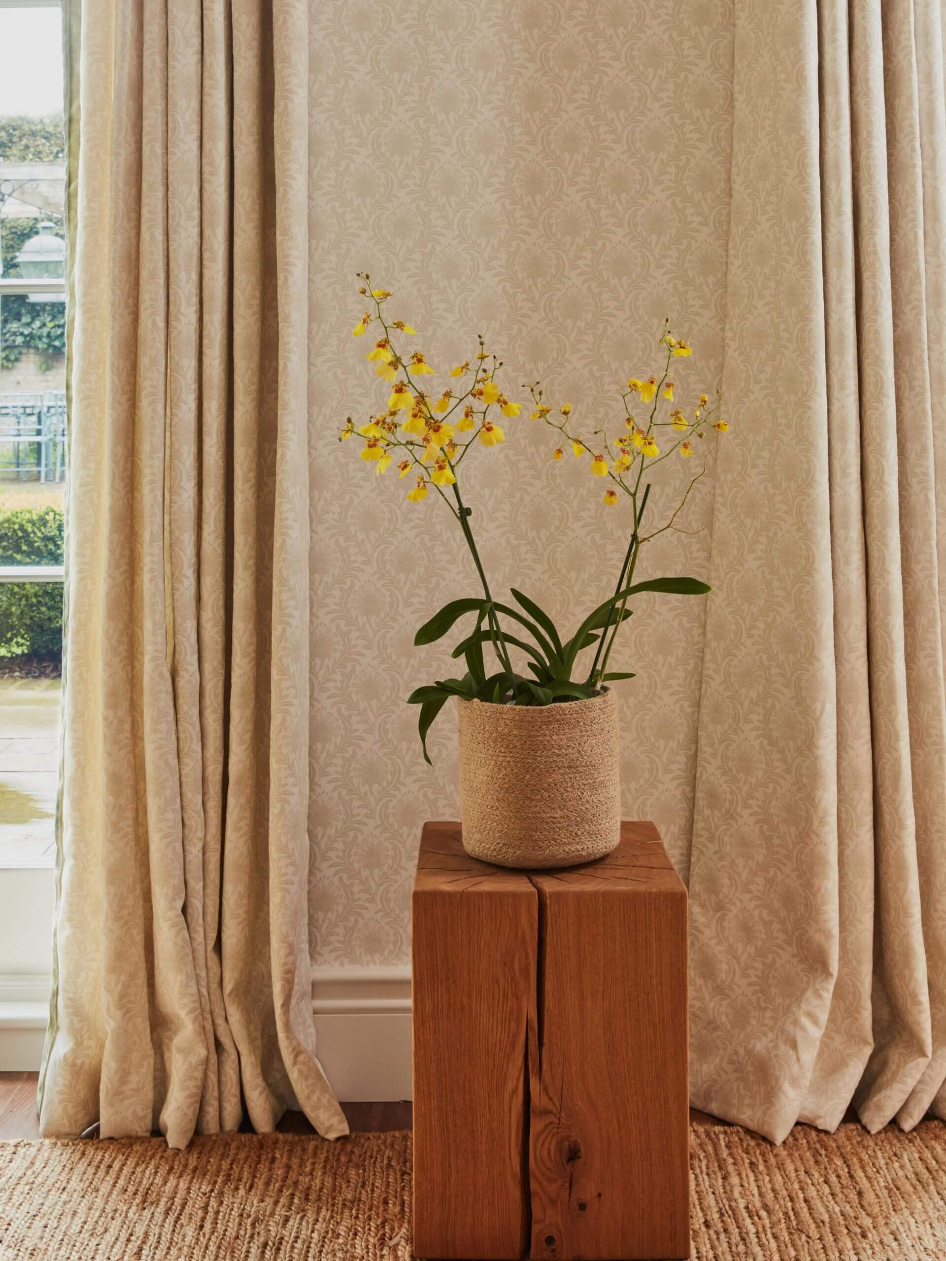 A charming, small-scale floral with timeless appeal crafted on linen. Inspired by the radiant spirit of its namesake, my beloved grandmother, Vivien, this floral design encapsulates the essence of her warmth and playful nature. Vivien is a simplified smaller version design of my larger-scale floral Raine making it incredibly adaptable to any space within your home. Whether you’re seeking to create a cosy reading nook, revamp your sitting room or bedroom or use as a complimentary fabric, this small print is suited to all. Vivien is the perfect coordinate to Betsy and Raine on both linen and wallpaper and for a cohesive and coordinated aesthetic, complete the look by exploring the Vivien matching wallpaper. Available in 5 colourways – Bertram, Rose Dust, Elephants Blue and Pickled Green, Rose Tan All colourways are also available on matching wallpaper. For information on complimentary paint colours, please contact us.